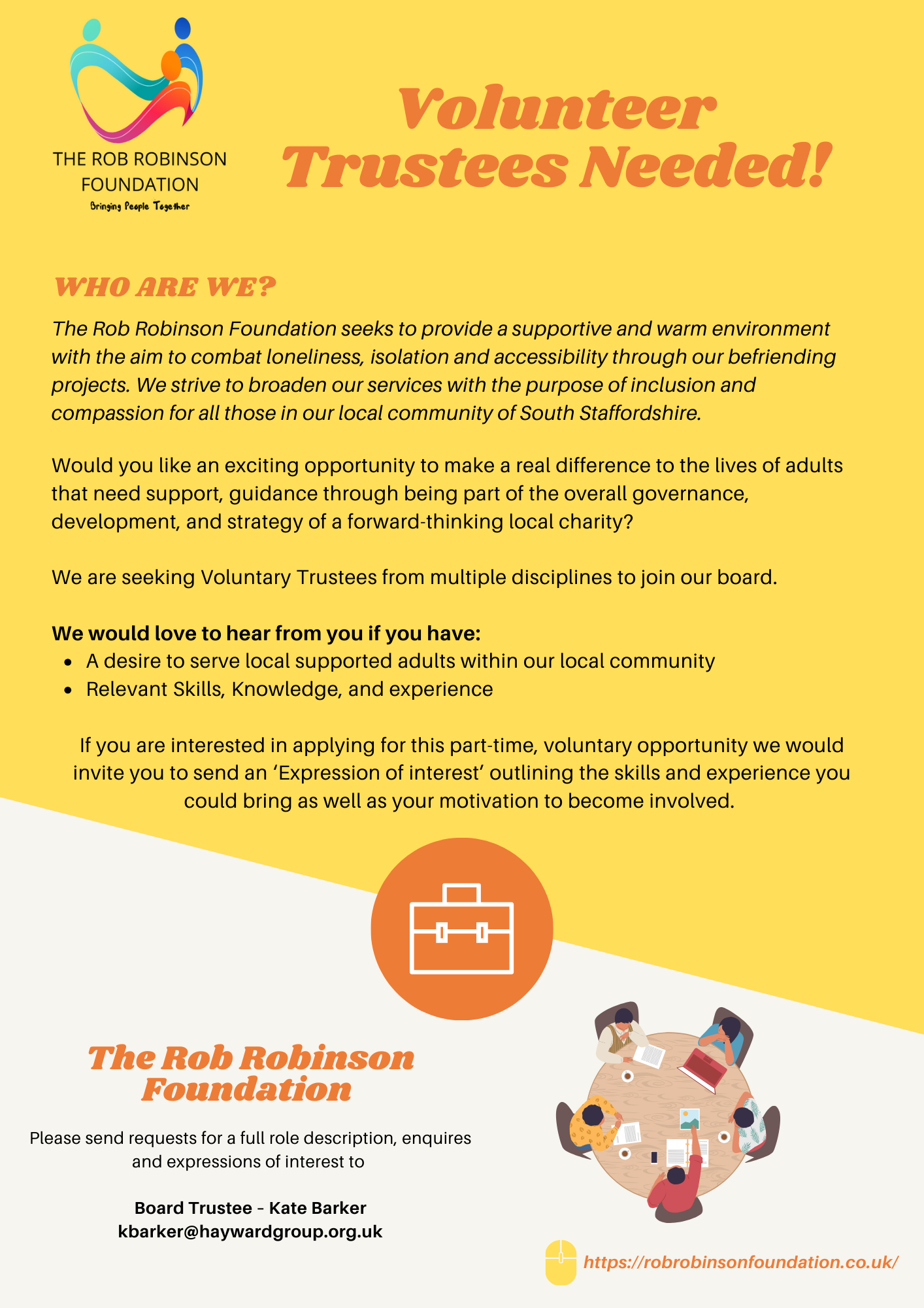 Please contact us at volunteer@robrobinsonfoundation.co.uk if you are interested with volunteering with us.